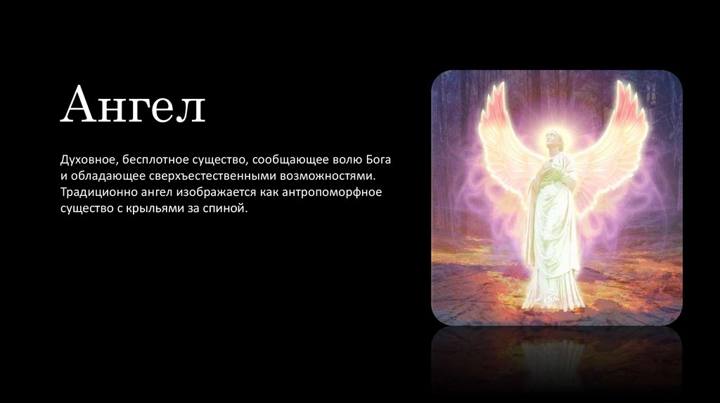 АнгелДуховное, бесплотное существо, сообщающее волю Бога