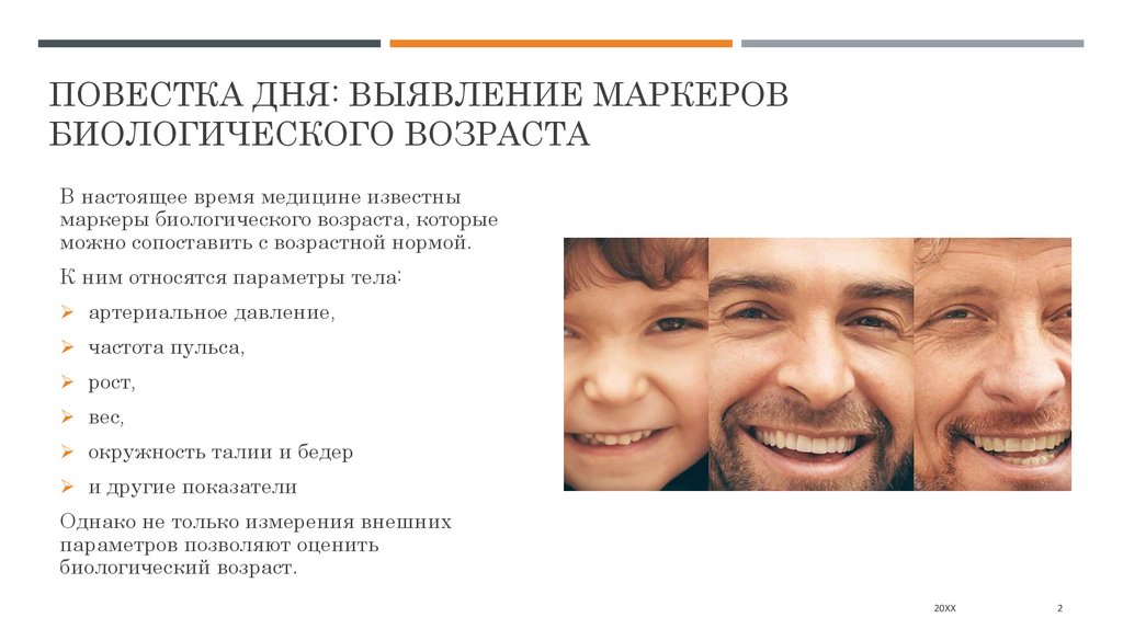 ПОВЕСТКА ДНЯ: ВЫЯВЛЕНИЕ МАРКЕРОВБИОЛОГИЧЕСКОГО ВОЗРАСТА