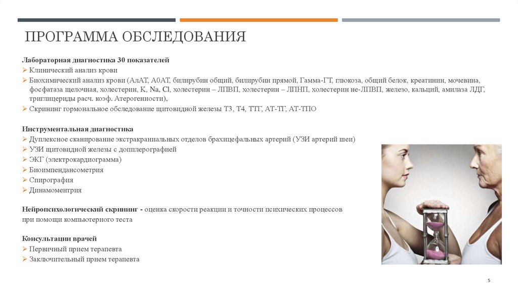 ПРОГРАММА ОБСЛЕДОВАНИЯЛабораторная диагностика 30 показателей
