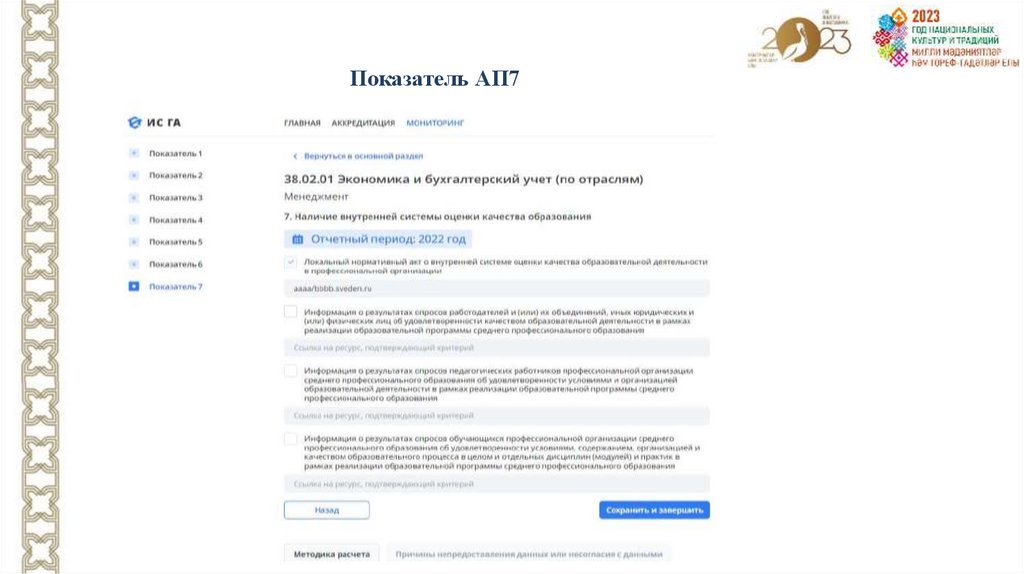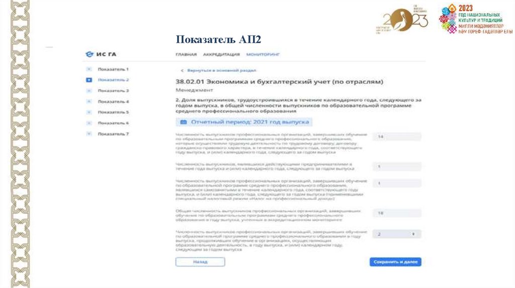 Информационная система для сбора данных попоказателям акредитационного мониторинга