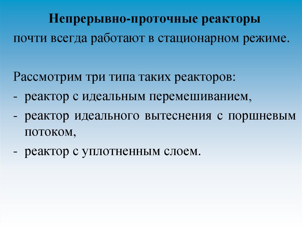 Непрерывно-проточные реакторыпочти всегда работают в стационарном режиме.
