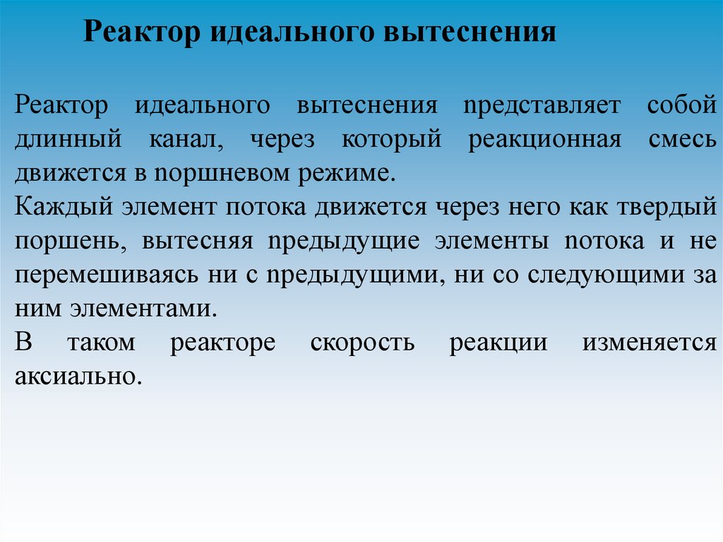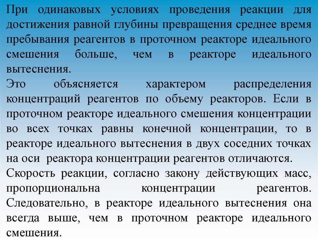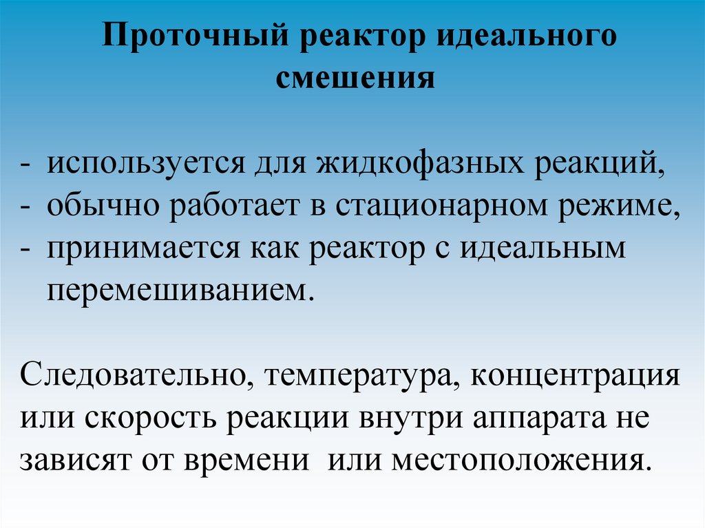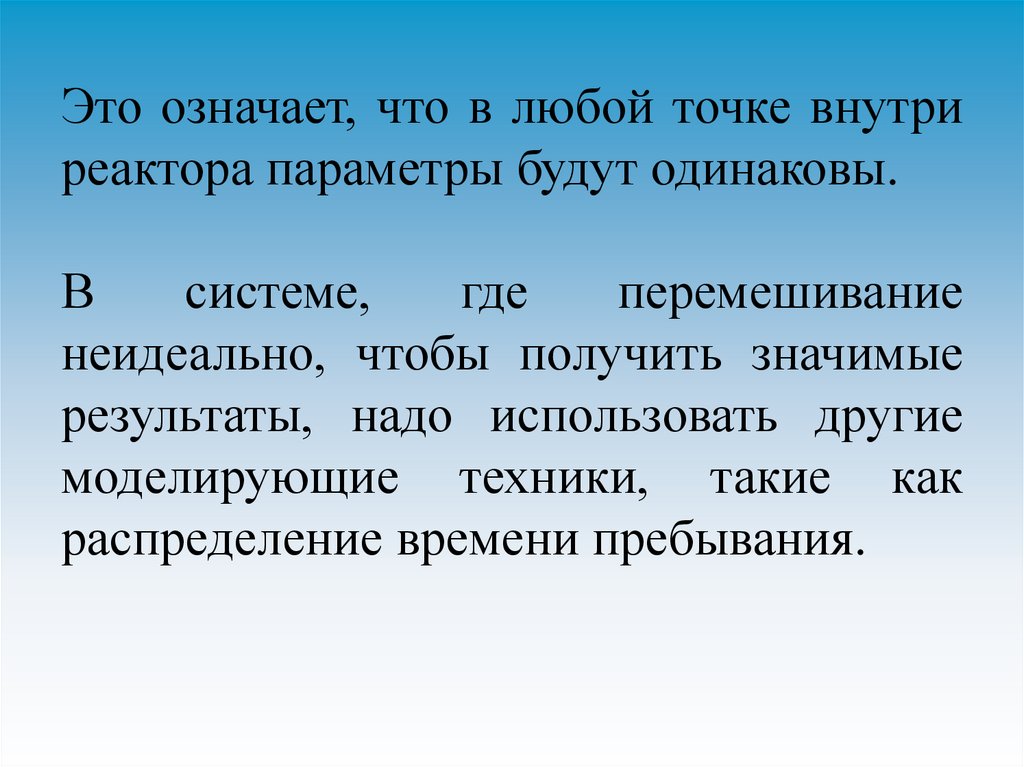 Это означает, что в любой точке внутриреактора параметры будут одинаковы.