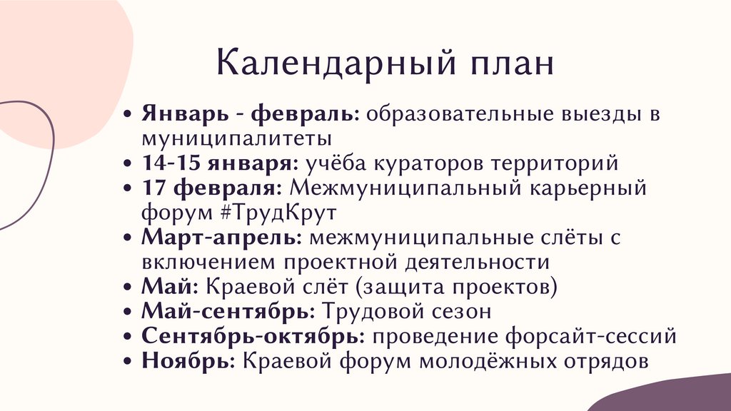 Календарный планЯнварь - февраль: образовательные выезды в