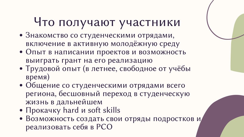 Что получают участникиЗнакомство со студенческими отрядами,
