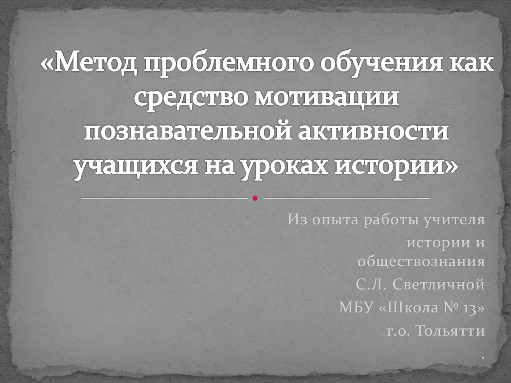 Метод проблемного обучения как средство мотивации познавательной активности учащихся на уроках истории