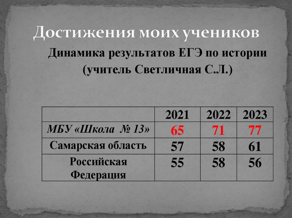 Динамика результатов ЕГЭ по истории(учитель Светличная С.Л.)