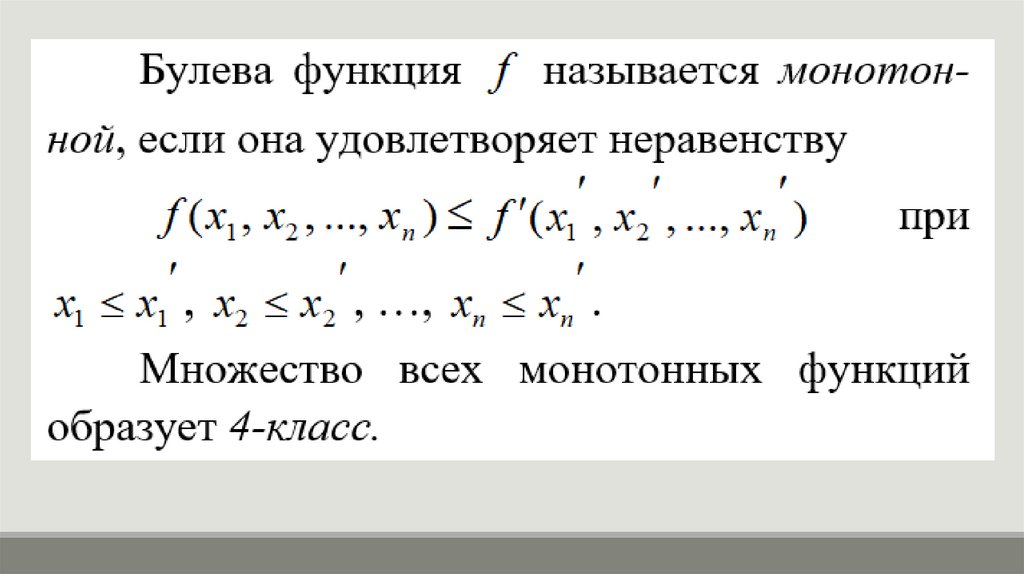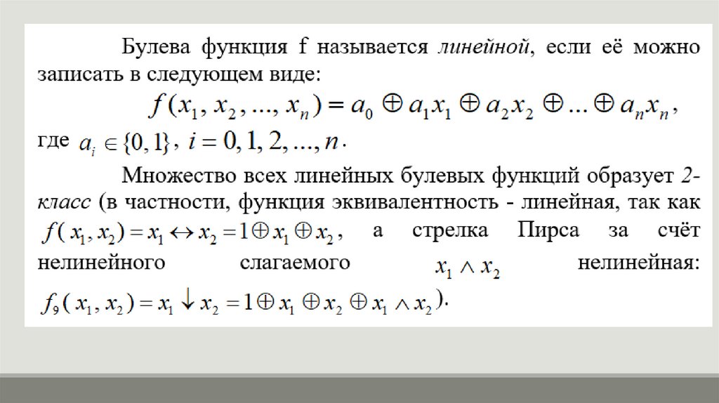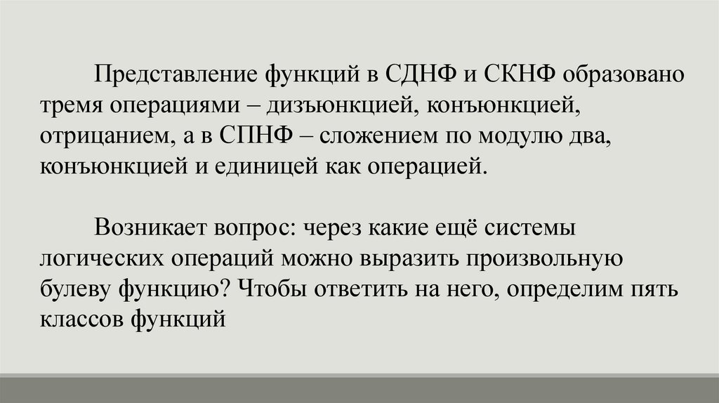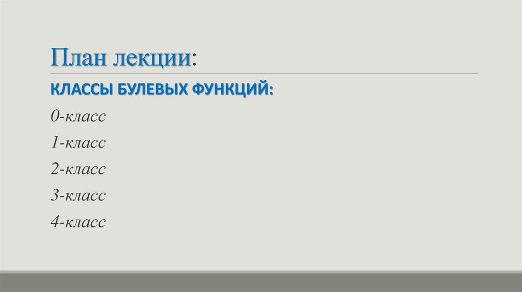 План лекции:КЛАССЫ БУЛЕВЫХ ФУНКЦИЙ: