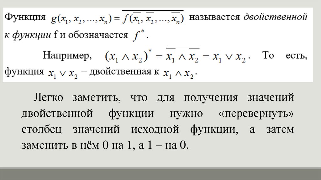 Легко заметить, что для получения значенийдвойственной функции нужно «перевернуть»