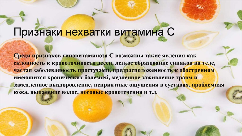 Признаки нехватки витамина ССреди признаков гиповитаминоза С возможны такие явления как