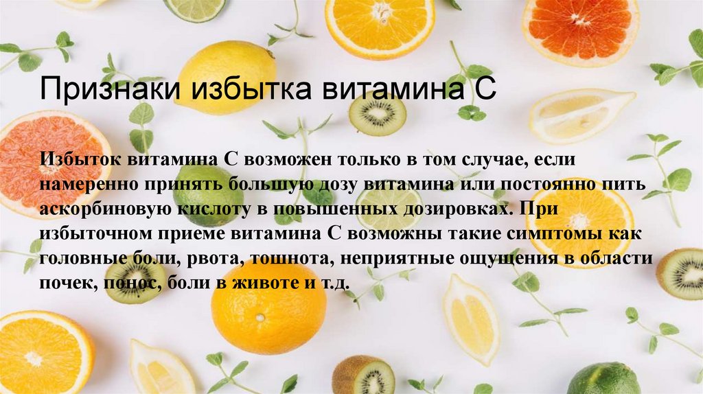 Признаки избытка витамина СИзбыток витамина С возможен только в том случае, если