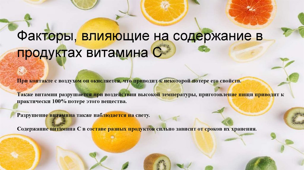 Содержание витамина С в составе разных продуктов сильно зависит от сроков их хранения.