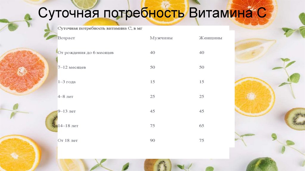 Суточная потребность Витамина ССуточная потребность витамина С, в мг
