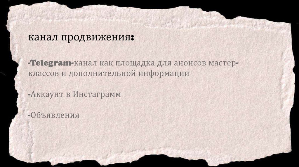 канал продвижения:-Telegram-канал как площадка для анонсов мастерклассов и дополнительной информации