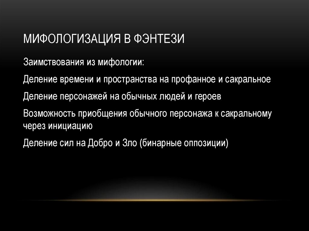 МИФОЛОГИЗАЦИЯ В ФЭНТЕЗИЗаимствования из мифологии: