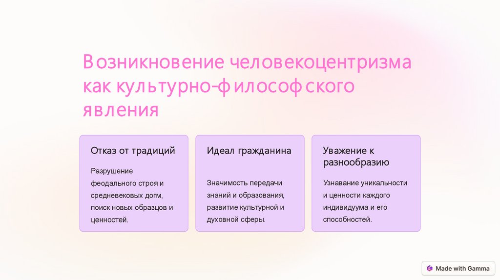 В озникновение человекоцентризмакак куль турно-ф илософ ского