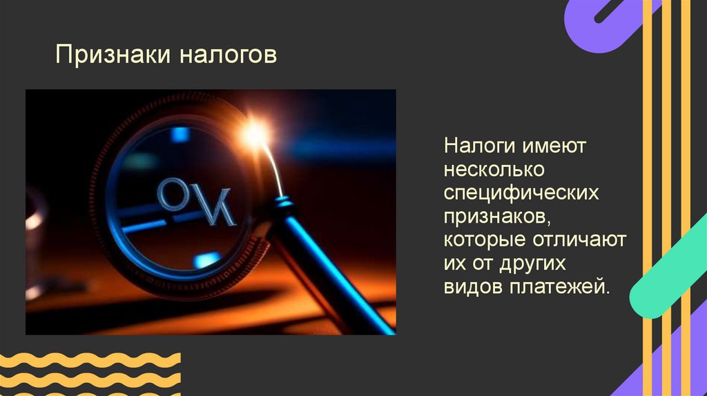 Признаки налоговНалоги имеют