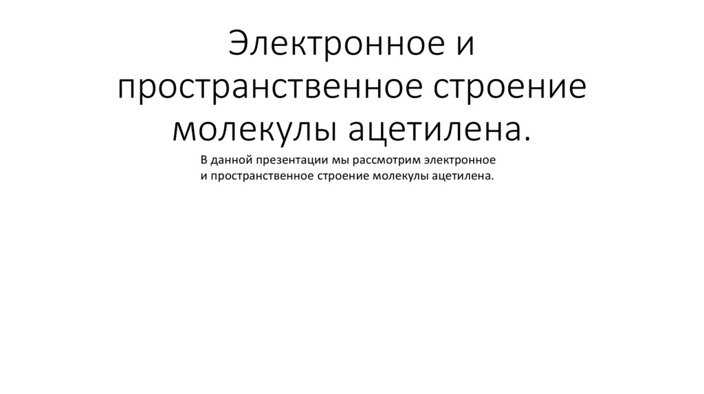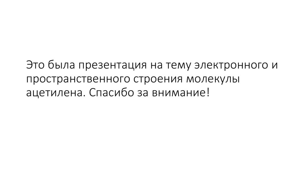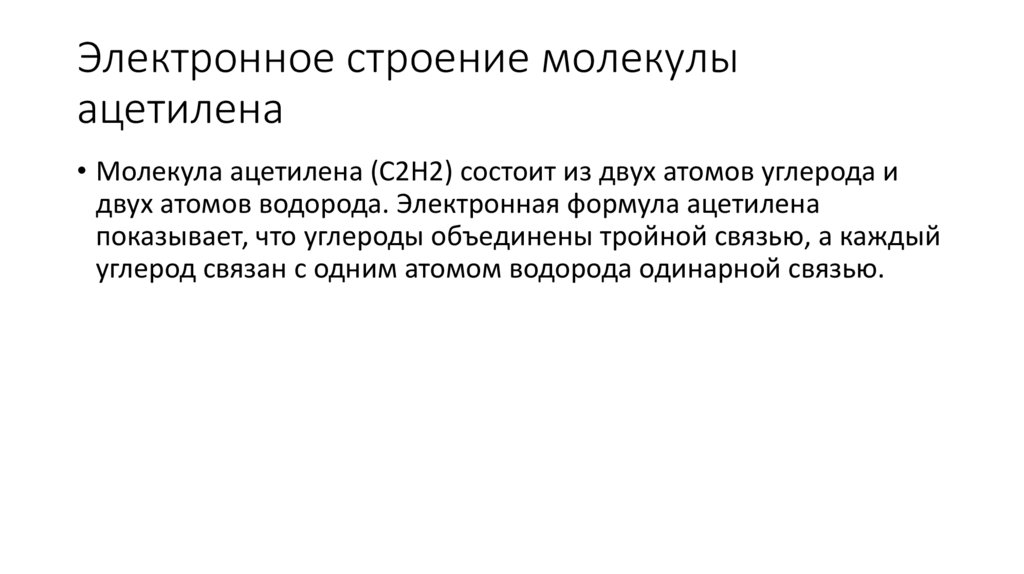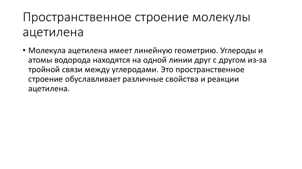 • Молекула ацетилена имеет линейную геометрию. Углероды и