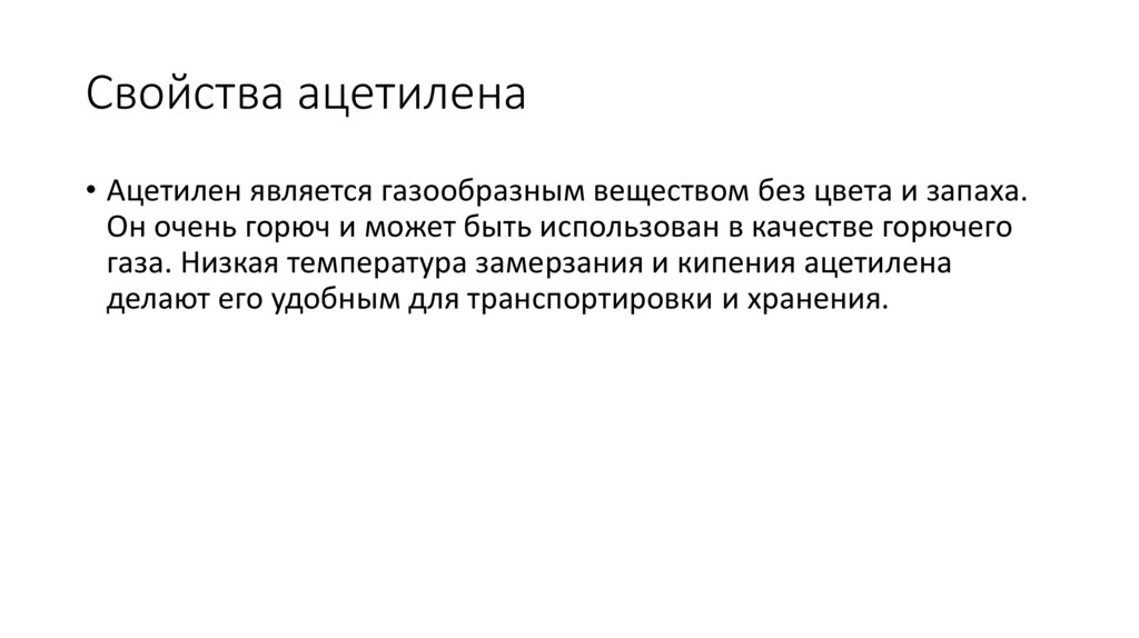 Свойства ацетилена• Ацетилен является газообразным веществом без цвета и запаха.