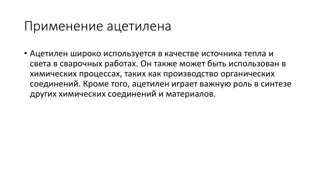 соединений. Кроме того, ацетилен играет важную роль в синтезе