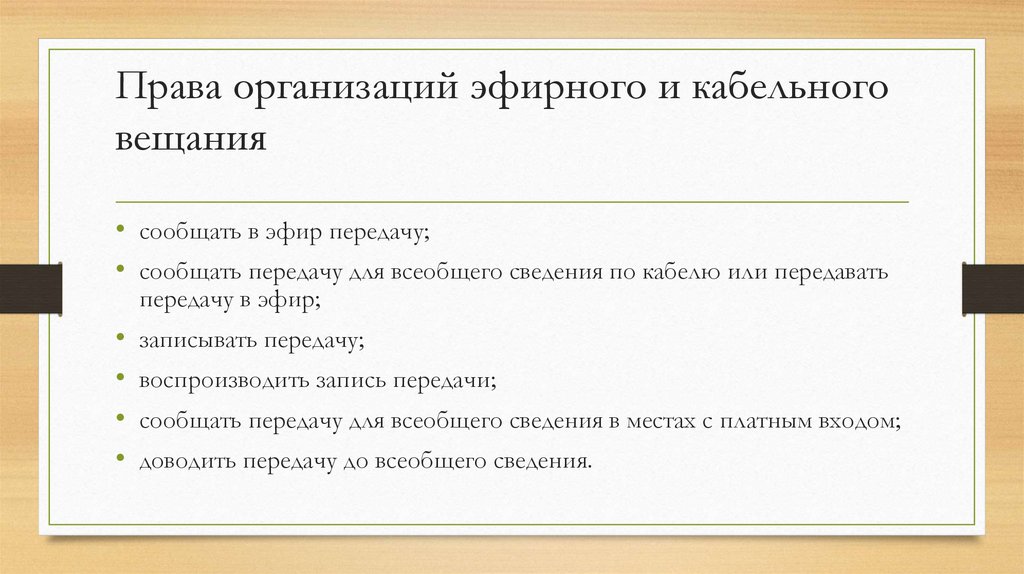 • сообщать передачу для всеобщего сведения по кабелю или передавать