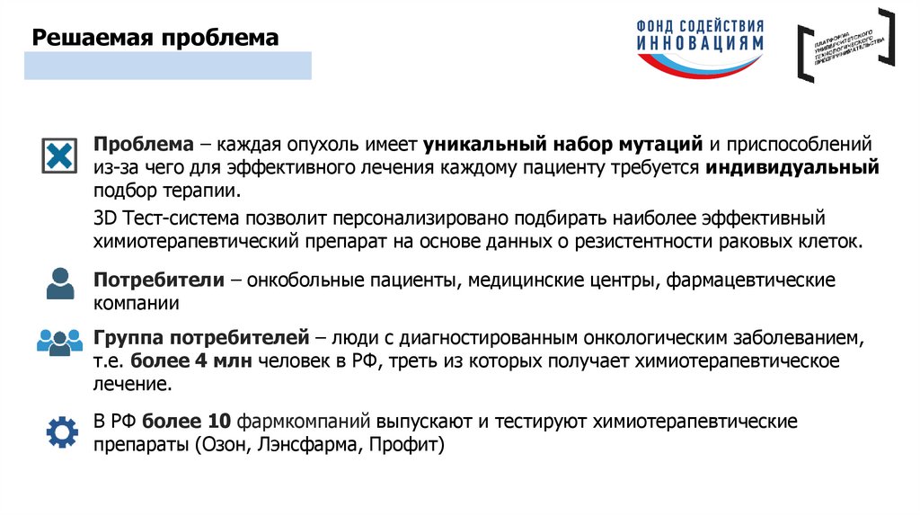 Решаемая проблемаПроблема – каждая опухоль имеет уникальный набор мутаций и приспособлений