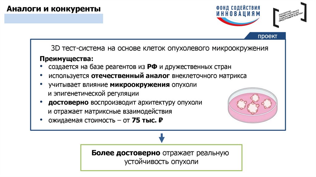 Аналоги и конкуренты3D тест-система на основе клеток опухолевого микроокружения