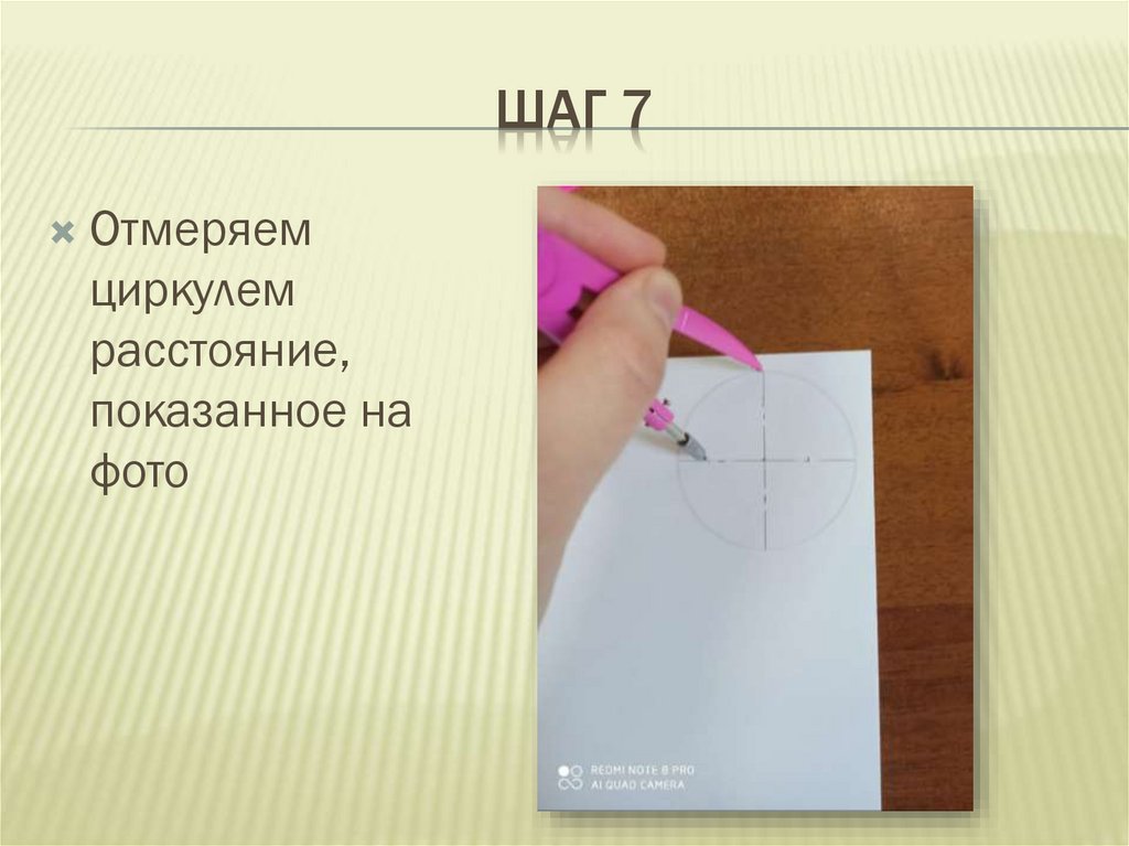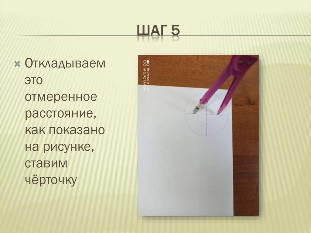на фото. Ставим чёрточки. !Расстояние циркуля