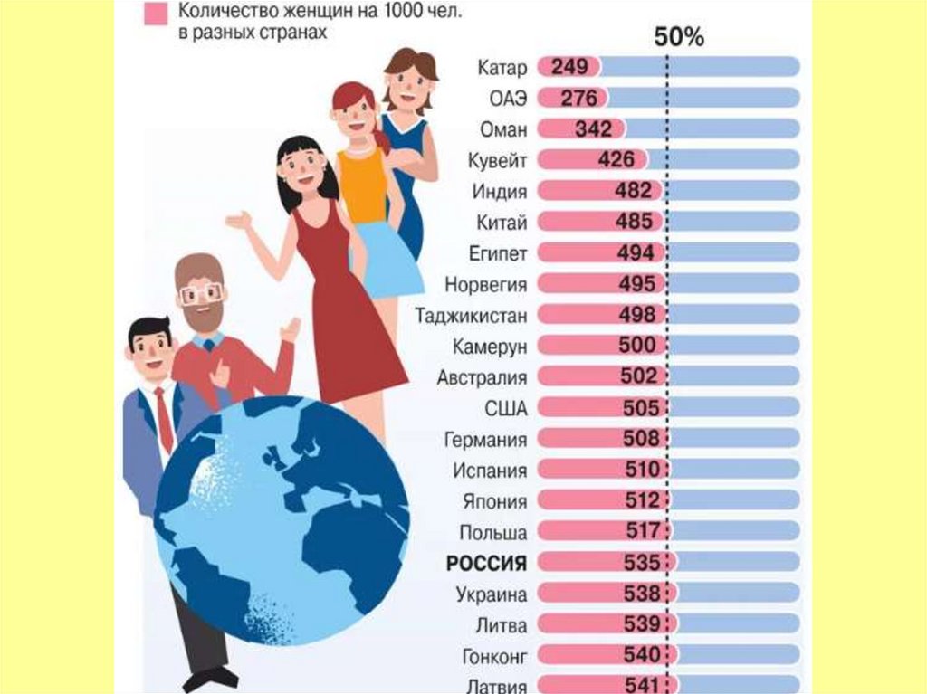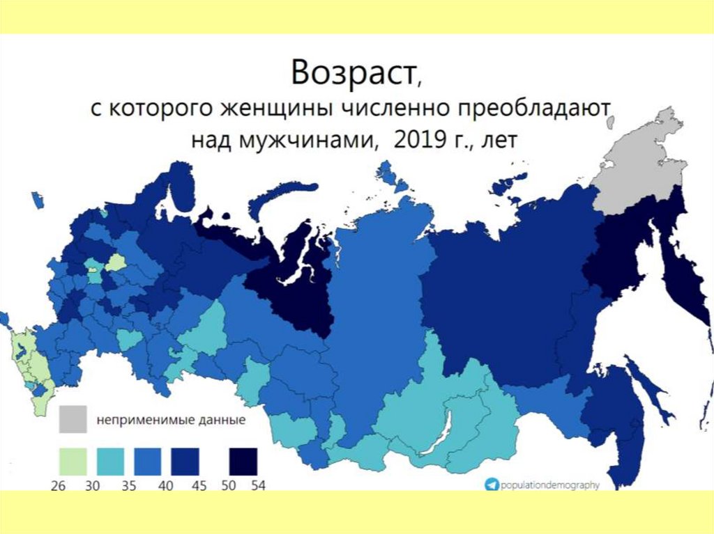 Половозрастная пирамида РоссииПеревес мужчин или женщин в