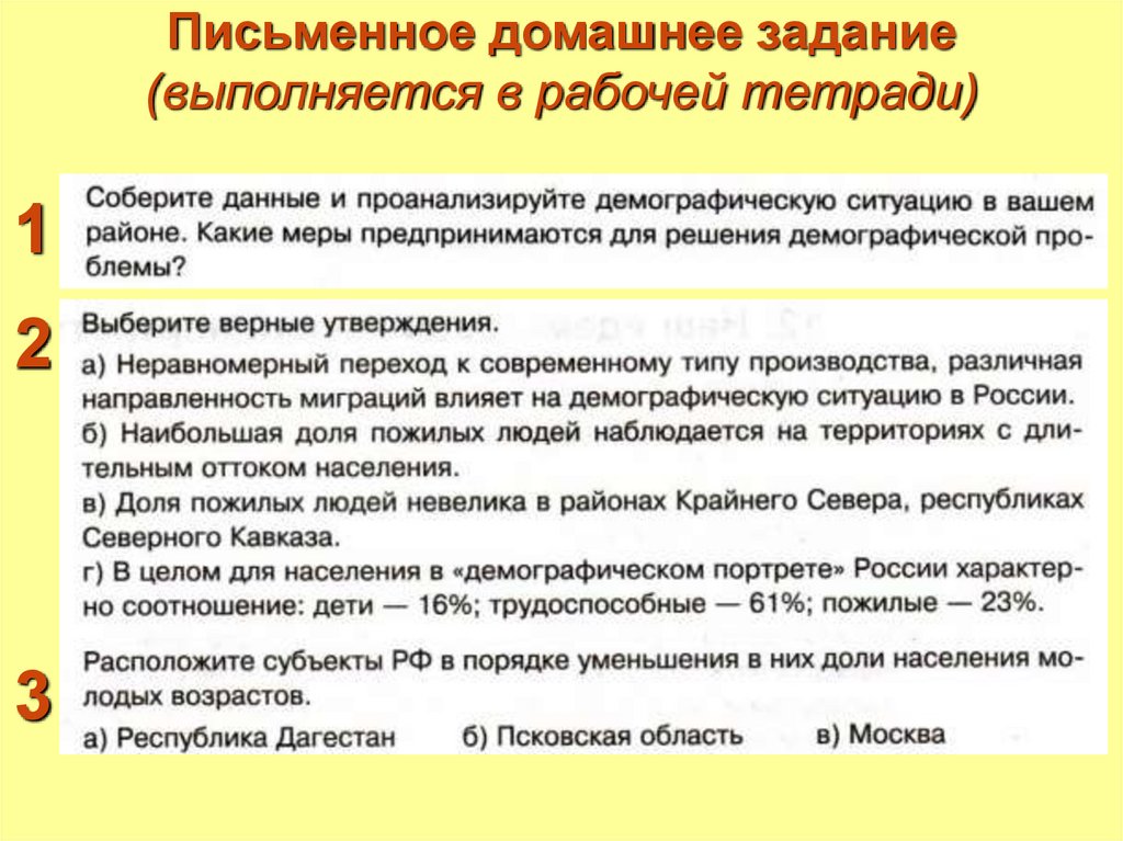 Письменное домашнее задание(выполняется в рабочей тетради)