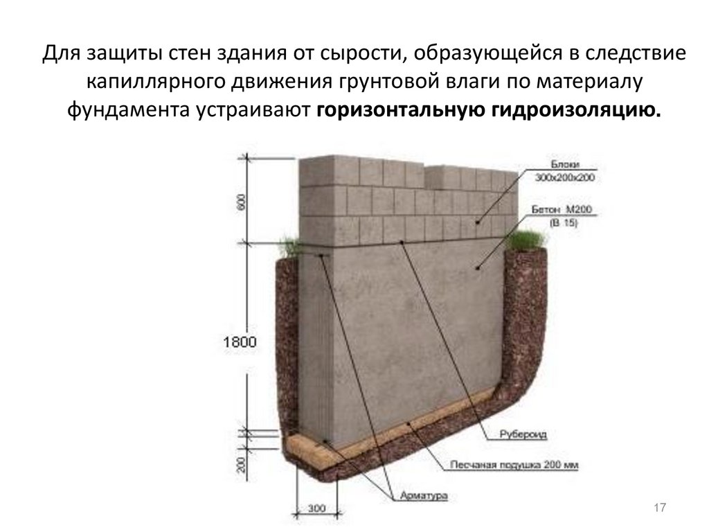 Для защиты стен здания от сырости, образующейся в следствиекапиллярного движения грунтовой влаги по материалу