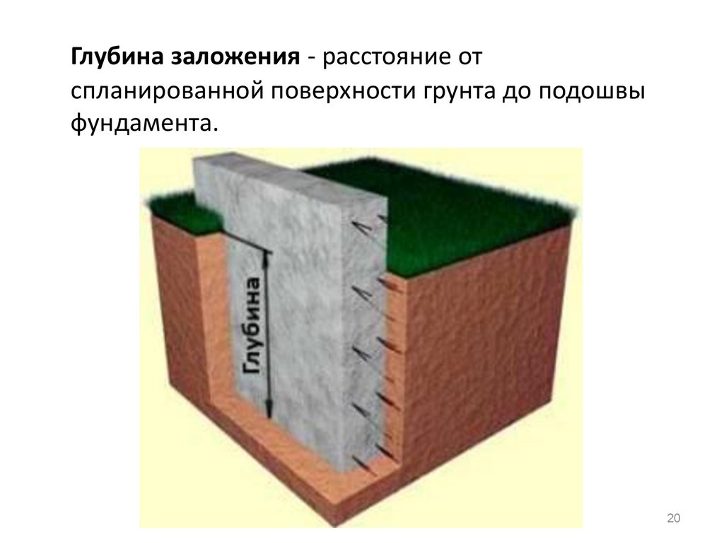 Глубина заложения - расстояние отспланированной поверхности грунта до подошвы