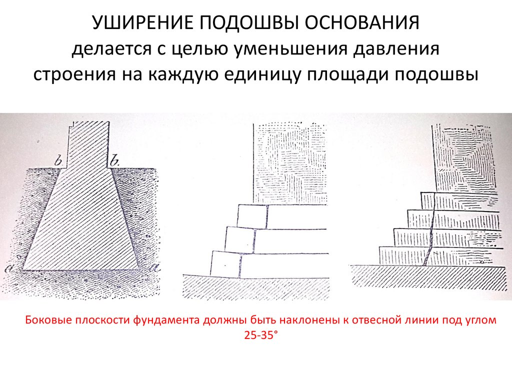 УШИРЕНИЕ ПОДОШВЫ ОСНОВАНИЯделается с целью уменьшения давления
