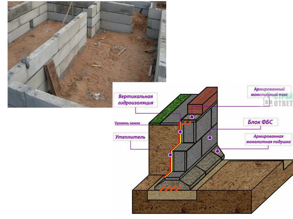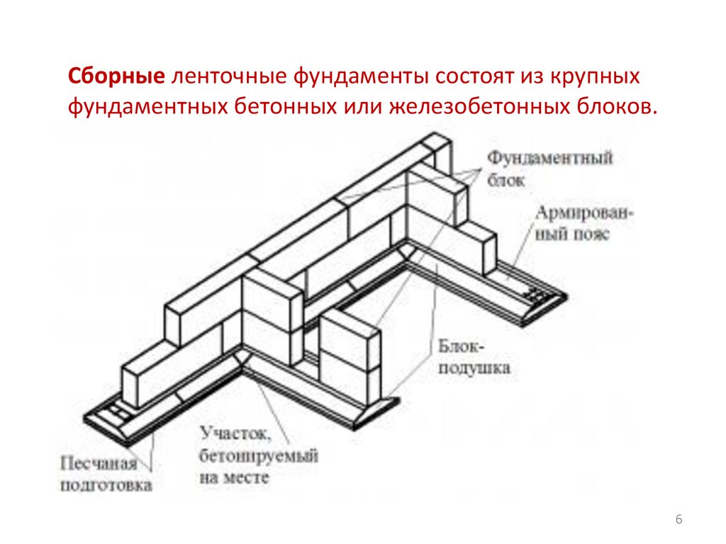 Сборные ленточные фундаменты состоят из крупныхфундаментных бетонных или железобетонных блоков.