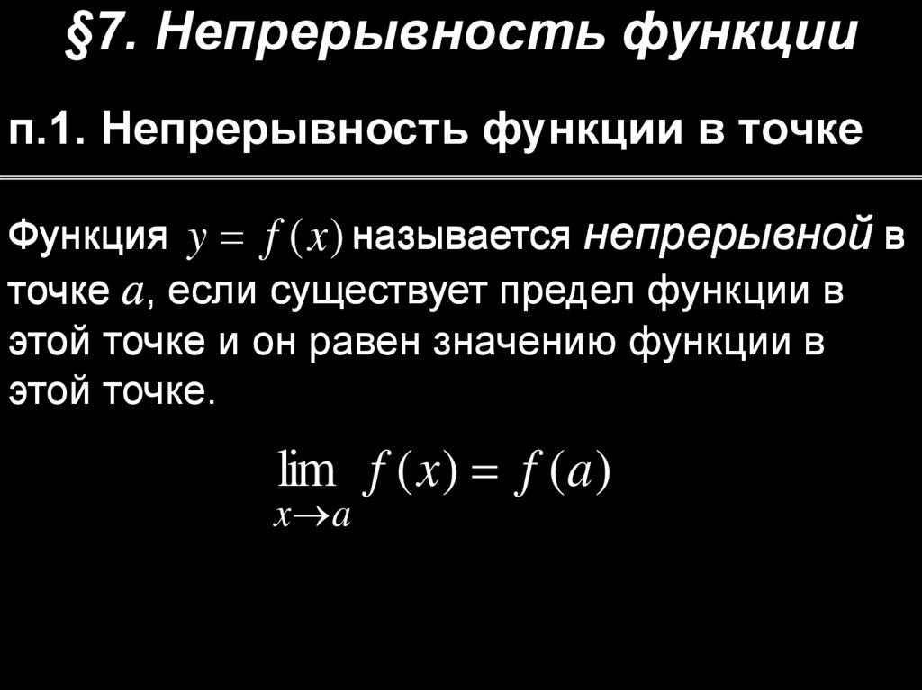 §7. Непрерывность функциип.1. Непрерывность функции в точке