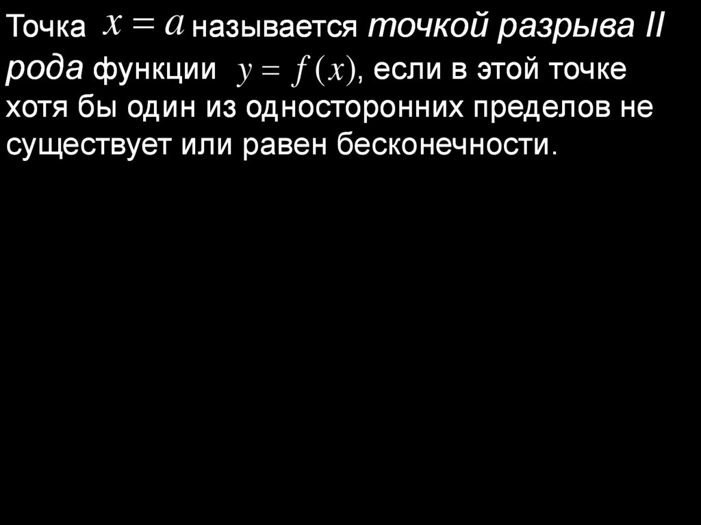 Точка x a называется точкой разрыва IIрода функции y f (x ), если в этой точке
