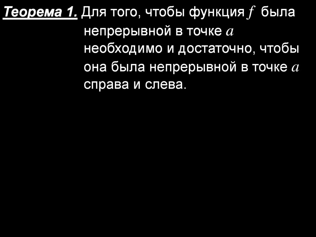Теорема 1. Для того, чтобы функция f быланепрерывной в точке a
