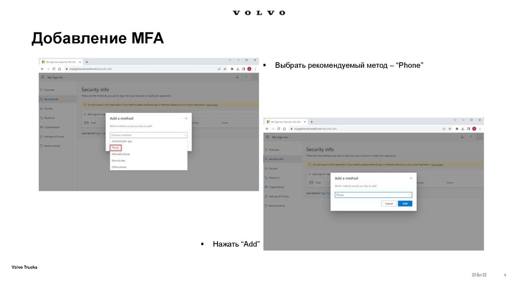 Добавление MFAВыбрать рекомендуемый метод – “Phone”