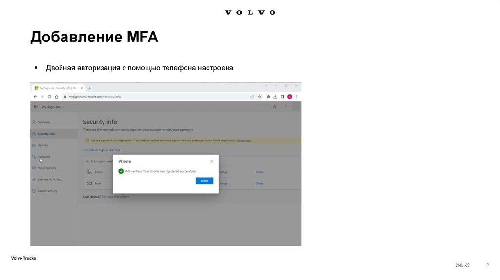 Добавление MFAДвойная авторизация с помощью телефона настроена