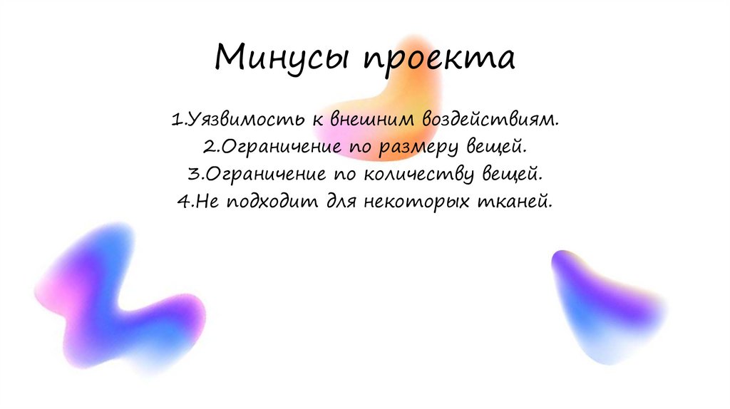 Минусы проекта1.Уязвимость к внешним воздействиям.