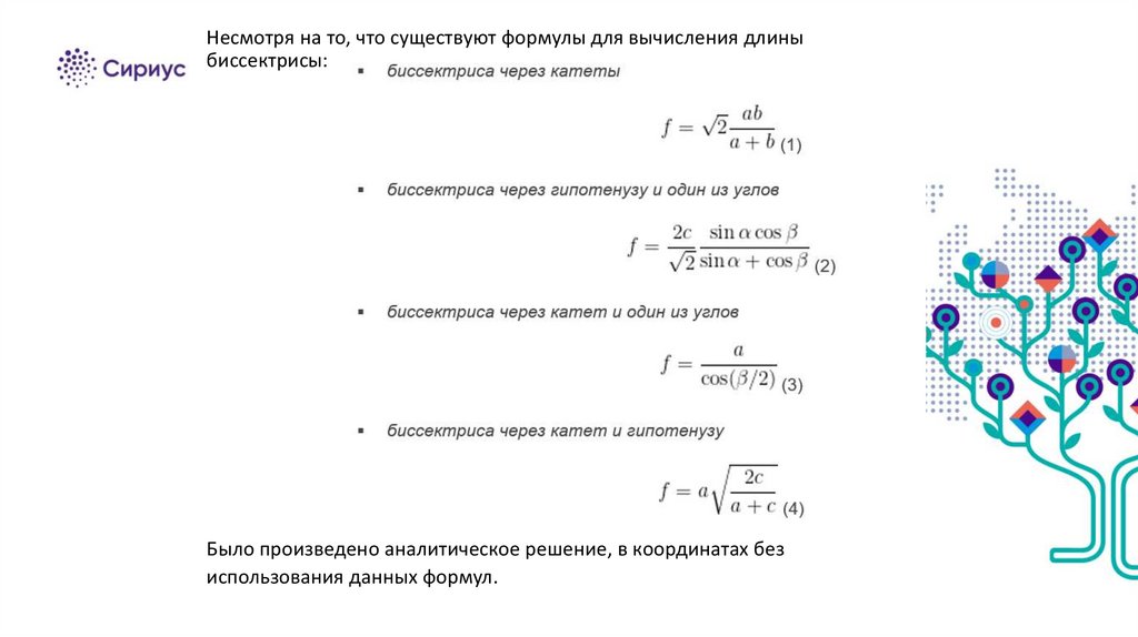 Несмотря на то, что существуют формулы для вычисления длиныбиссектрисы: