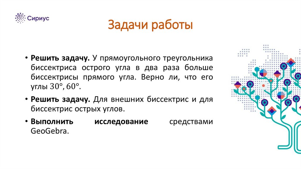 Задачи работы• Решить задачу. У прямоугольного треугольника