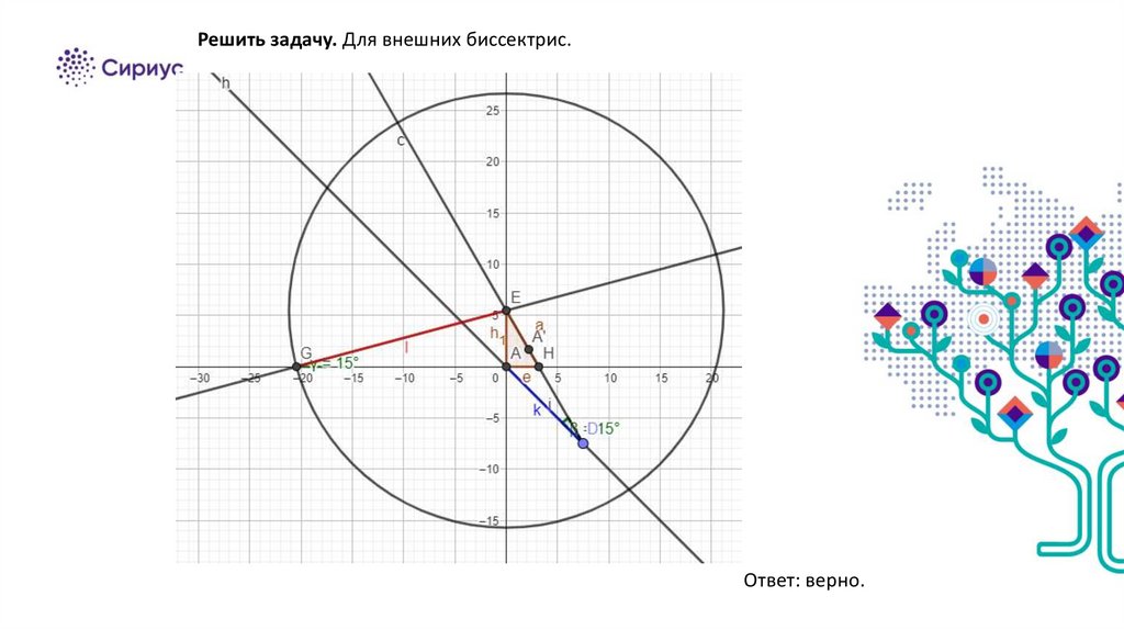 Решить задачу. Для внешних биссектрис.Ответ: верно.