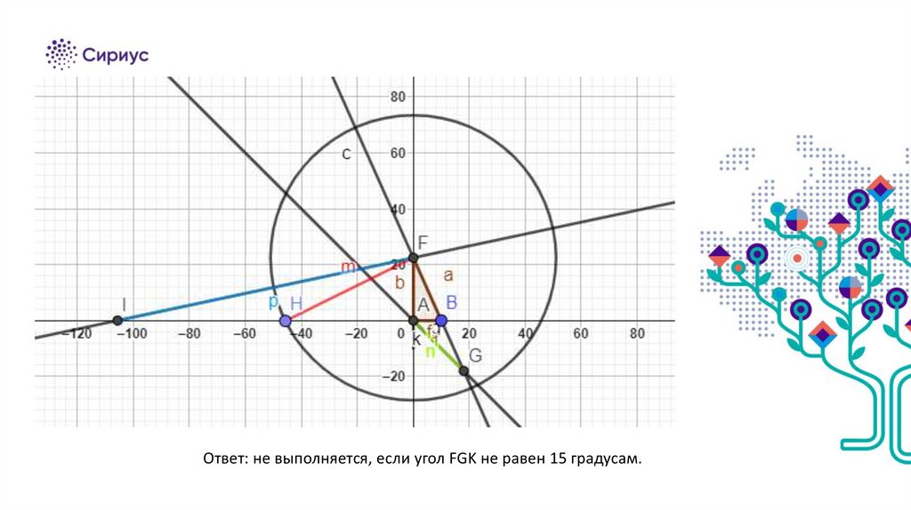 Ответ: не выполняется, если угол FGK не равен 15 градусам.10.