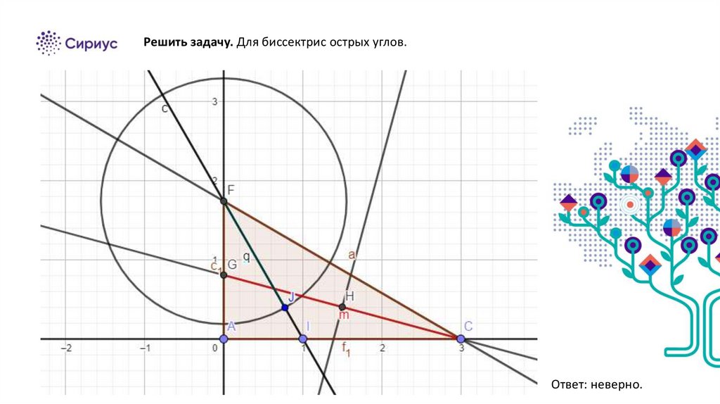 Решить задачу. Для биссектрис острых углов.Ответ: неверно.