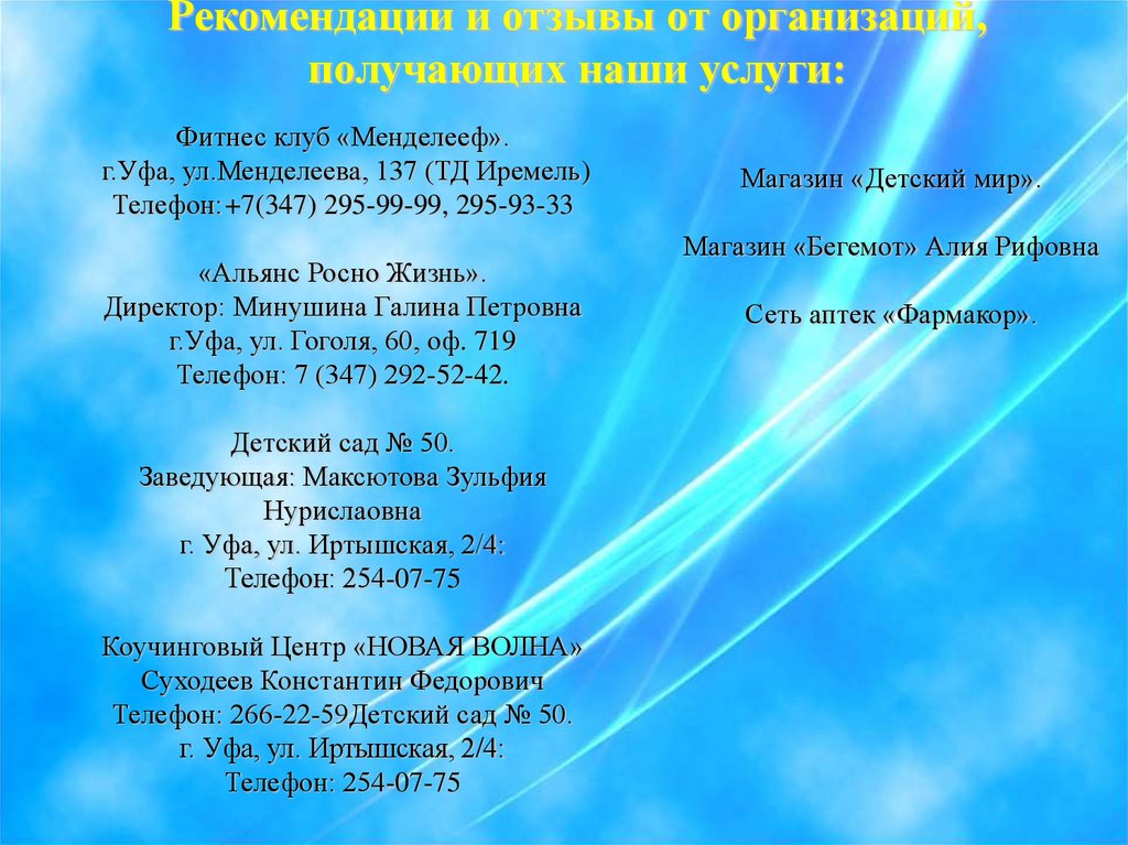 Рекомендации и отзывы от организаций,получающих наши услуги: