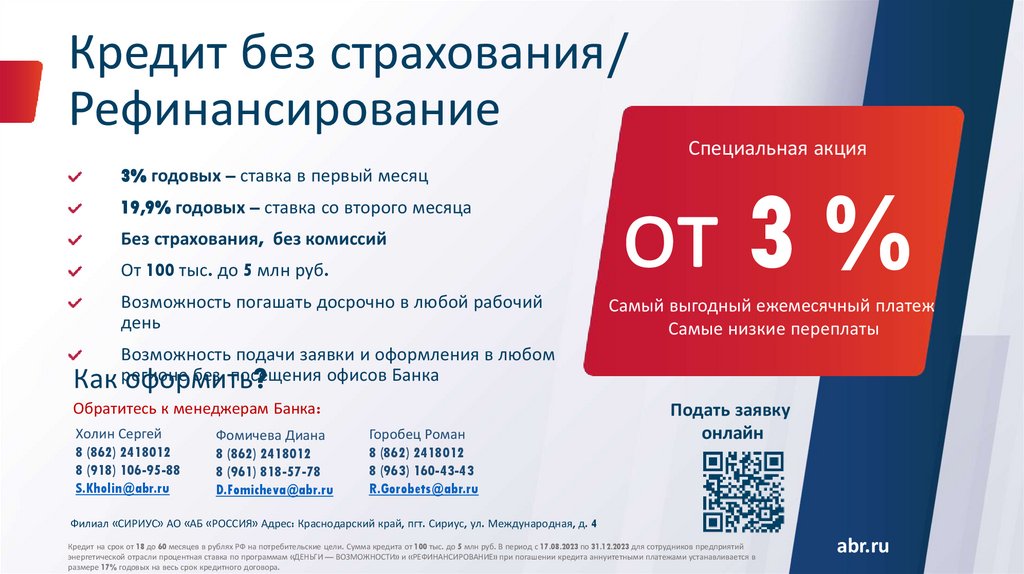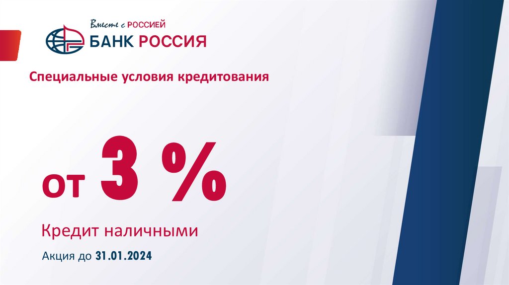 Банк Россия. Специальные условия кредитования от 3%