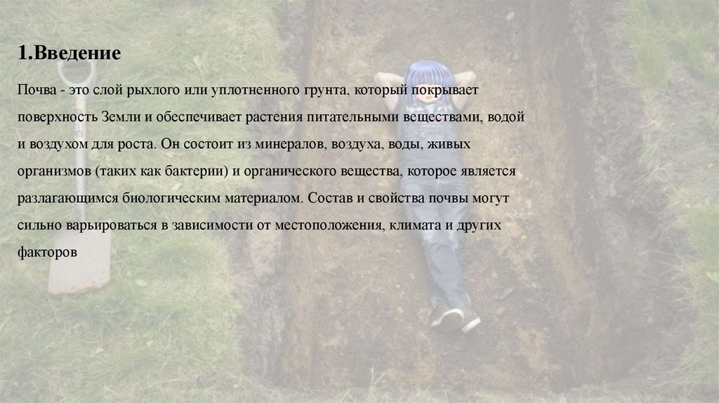 разлагающимся биологическим материалом. Состав и свойства почвы могут