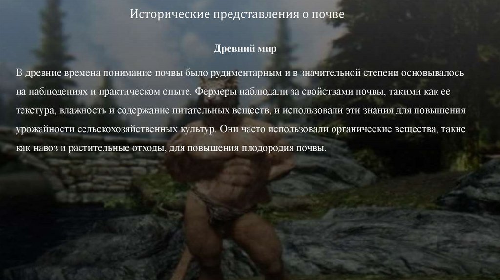 В древние времена понимание почвы было рудиментарным и в значительной степени основывалось