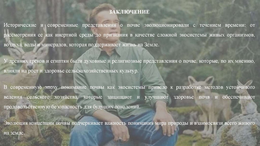 ЗАКЛЮЧЕНИЕИсторические и современные представления о почве эволюционировали с течением времени: от