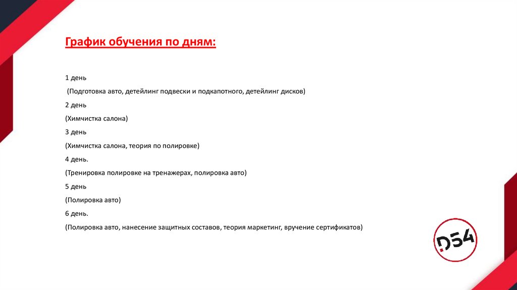 График обучения по дням:1 день
